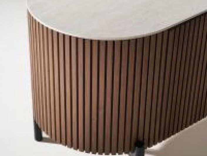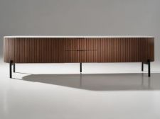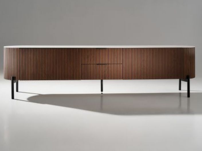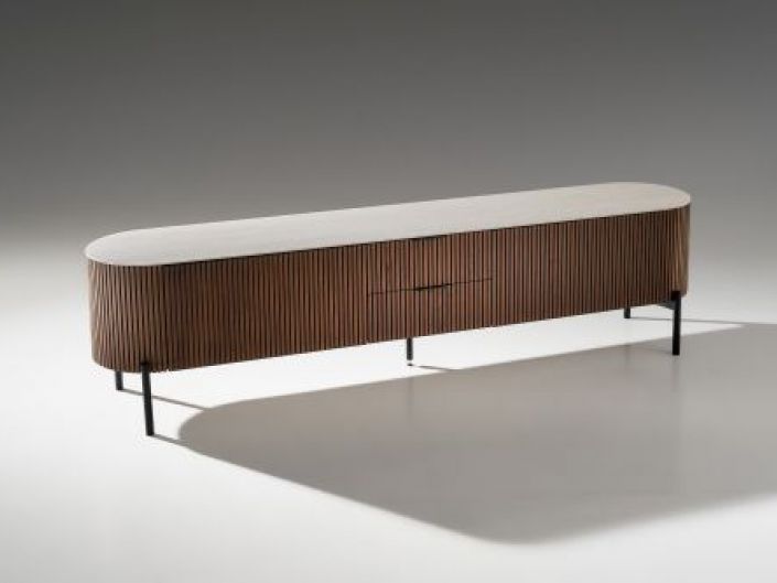 Το έπιπλο τηλεόρασης Gaia κατασκευάζεται από ξύλο δρυός και μεταλλικές λεπτομέρειες.