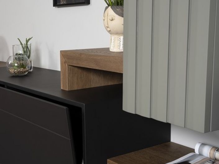 Υλικά κατασκευής: Ξύλο δρυός ρουστίκ σε συνδυασμό με ματ και πλισέ λάκα.