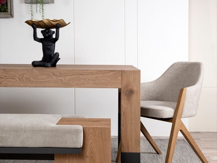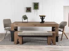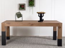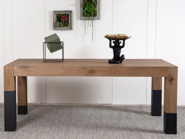 Τραπεζαρία Box κατασκευασμένη από ξύλο δρυός ρουστίκ και μεταλλική βάση με πρωτότυπο σχέδιο βάσης.