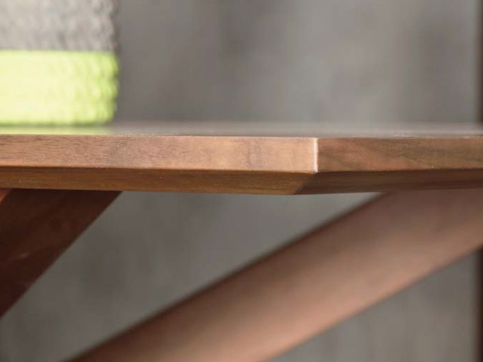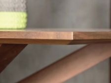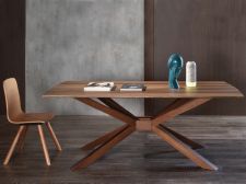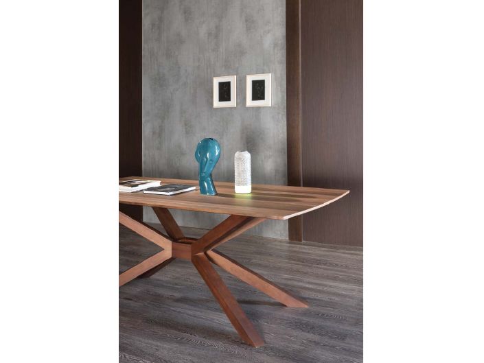 Τραπεζαρία Fusion κατασκευασμένη από ξύλο καρυδιάς. Υπάρχει δυνατότητα αλλαγής χρώματος και διαστάσεων. Ιδιαίτερο χαρακτηριστικό σχήμα στα πόδια.